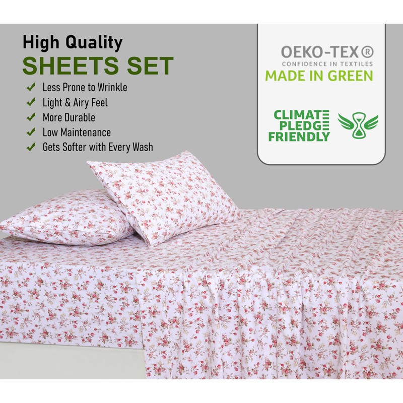 RUVANTI 100% Cotton California King Sheet Sets, 4 Pieces, Soft & Breathable Percale Weave Bedding, Deep Pocket 16", Hotel Standard, Crisp Cool Feel & Durable, Perfect Floral Sheets, Bouquet