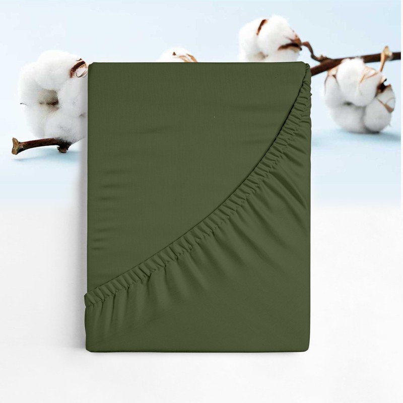 RUVANTI 100% Cotton Twin Fitted Sheet Only - Crispy Cooling Percale - Breathable & Durable Fitted Sheet Twin Size - Deep Pocket 16 Inches (Fits up to 18") - Chive - 1 Piece