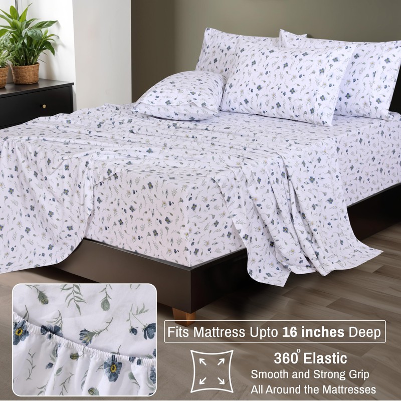- Whats Included: Our King sheet set includes 6 Pieces: 1 Flat sheet, 1 Fitted sheet with a 16-inch Deep Pocket that fits mattresses up to 18 inches, and 4 Pillowcases with 4 Inches HEM on Flat Sheet and Pillowcases. These machine-washable sheets become softer with each wash, ensuring comfort and freshness for years.