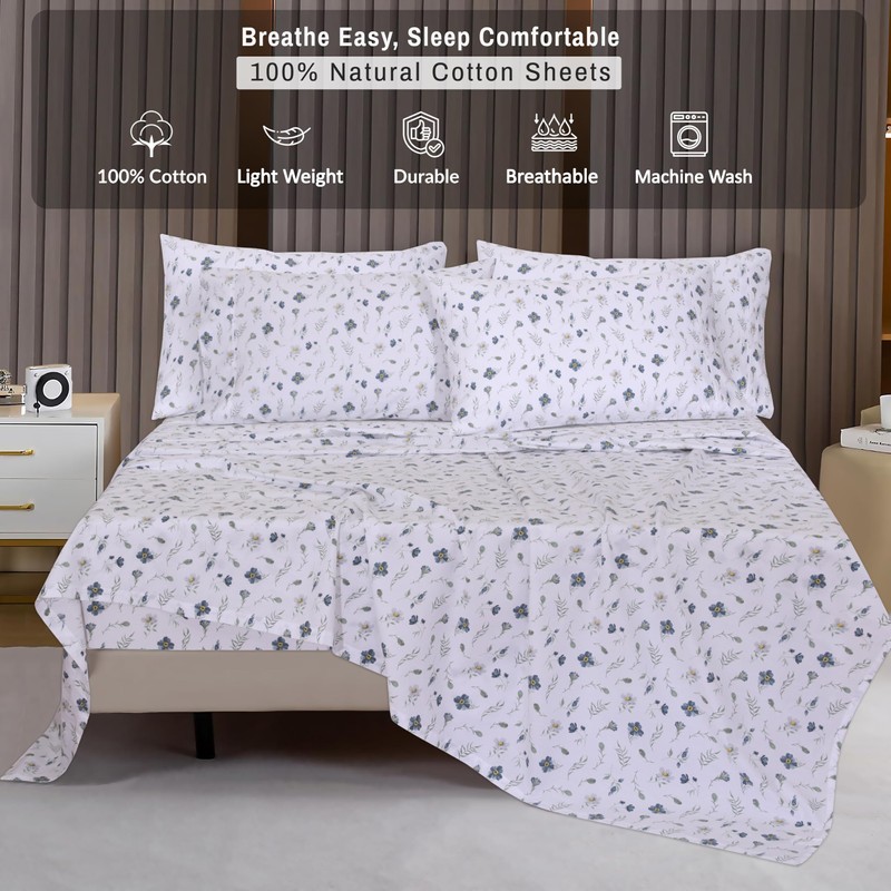 - Long Lasting : Enjoy the Perfect blend of longevity and effortless maintenance with our Premium Cotton Sheets. Our 100% Natural Cotton Sheets, made from durable percale weave fabric, offer lasting quality and resilience. The tightly woven structure enhances durability and maintains a crisp feel and vibrant colors over time.