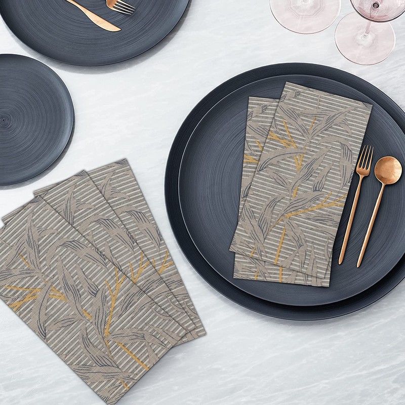 Ruvanti Cloth Napkins 12 Pack 18x18 Inch Dinner Napkins, Soft & Absorbent 100% Cotton Napkins Cloth Washable & Reusable. Cloth Napkin for Christmas, Thanksgiving Dinner, Weddings Parties - Leafy