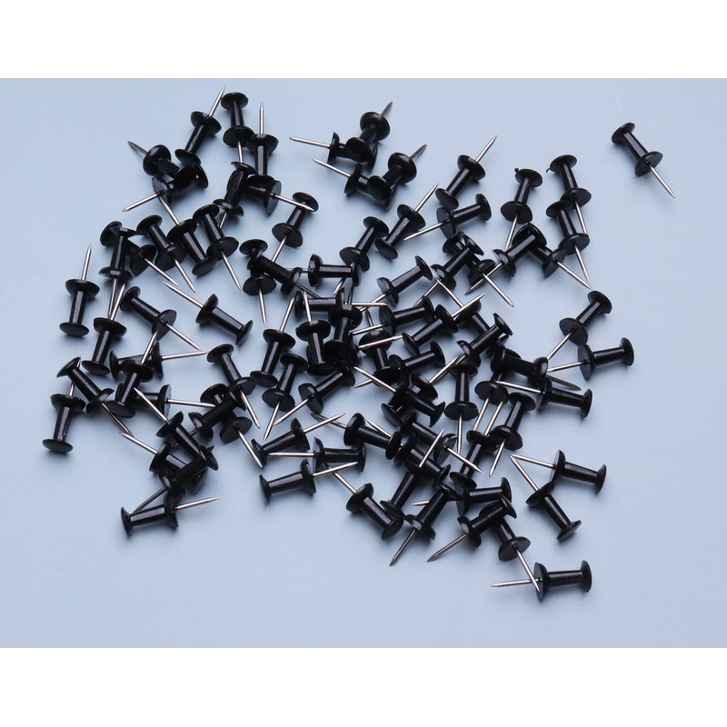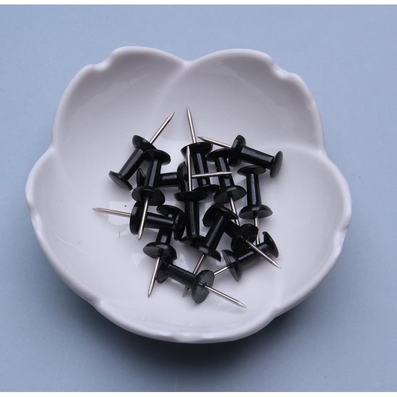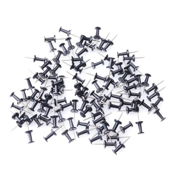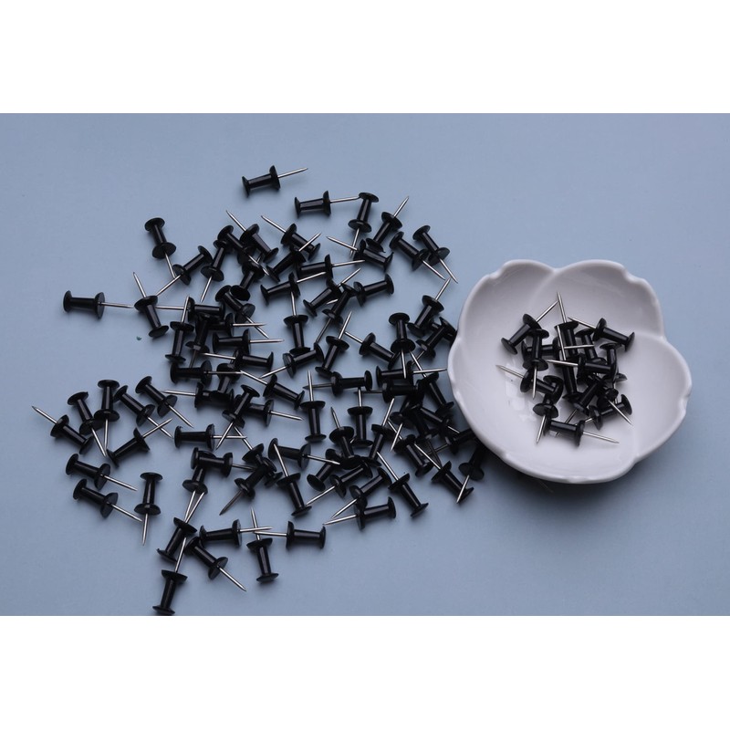 Ruwado 100 Pcs Push Pins Black Plastic Head Thumb Tacks for Bulletin Cork Boards Map Photos Calendar Project School Classroom Office Supplies DIY Crafting Art Use (Black)