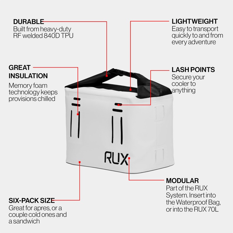 • Compact, Cold, and Ready – This small cooler bag is perfect for keeping a six-pack or lunch ice-cold wherever the day takes you. Whether you're heading to work, the trail, or après adventure, this mini cooler bag delivers premium insulation and portable convenience in a durable, space-saving design. From helmets and shoes to tools and snacks, RUX keeps your gear organized and easy to grab.