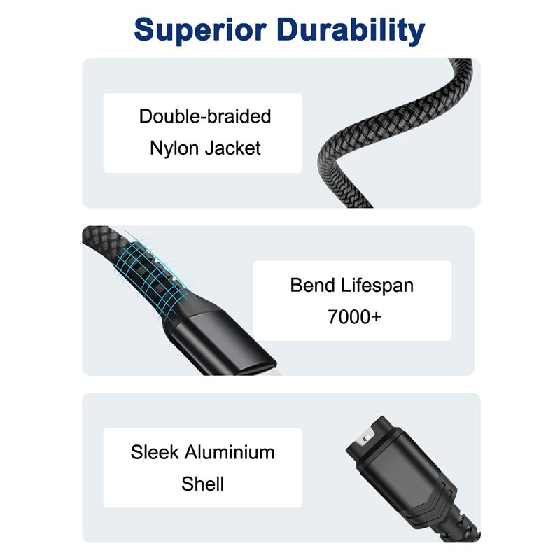 - (Stronger) With a double braided nylon jacket and aluminum housing, this cable is much stronger than the original and will last longer than you could ever imagine.