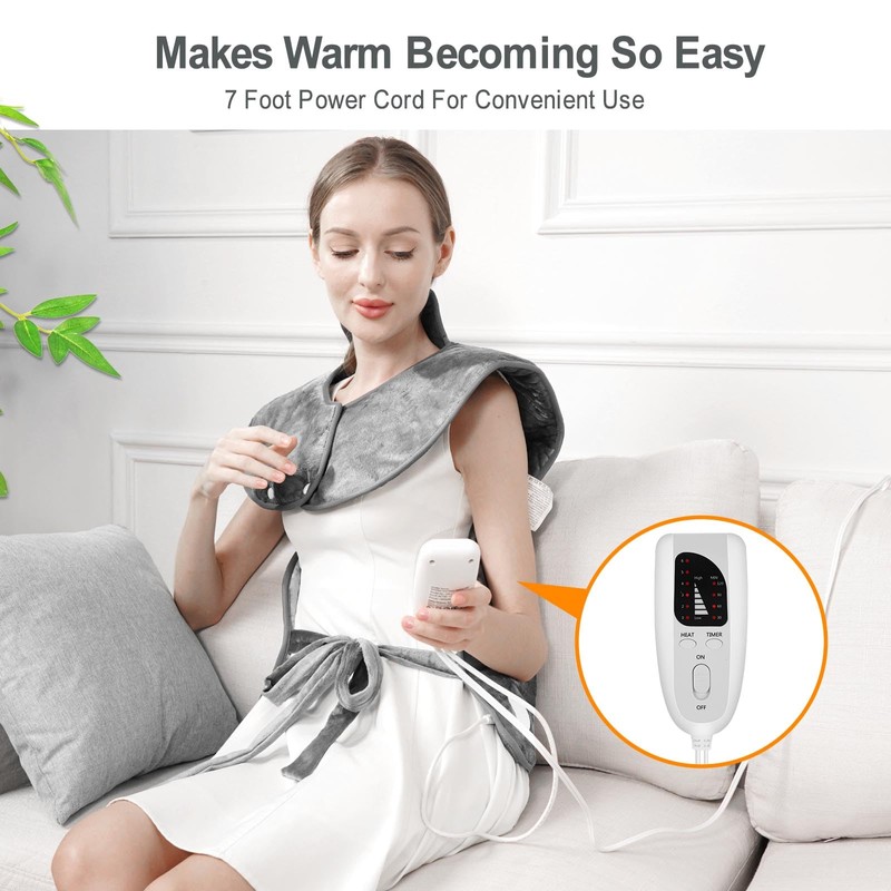 Ruyyi Fast Heating Electric Heating Pad for Neck and Shoulder and Back with 6 Heating Settings & 4 Timer, Large Size Heated Wrap with Auto Shut Off & Machine Washable (Silver Gray, 37x24 inch)