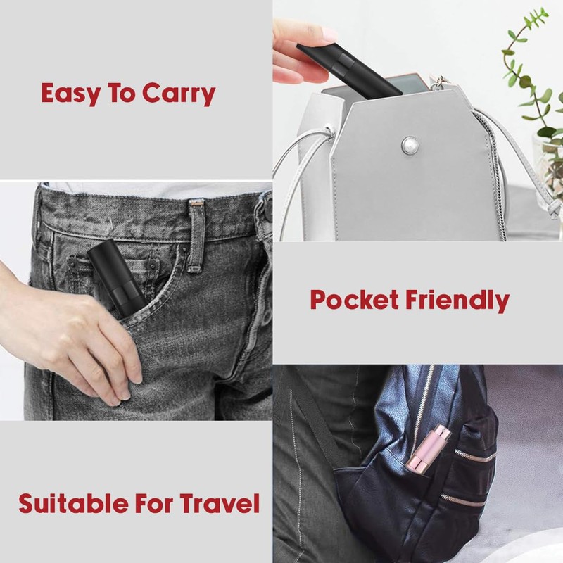 - MULTIPURPOSE: Travel atomizer mini perfume bottle works for both men and women, ideal for storing perfume, cologne, aftershave, fragrance, you can put it in your purse, handbag or pocket when in travel, office or any occasion