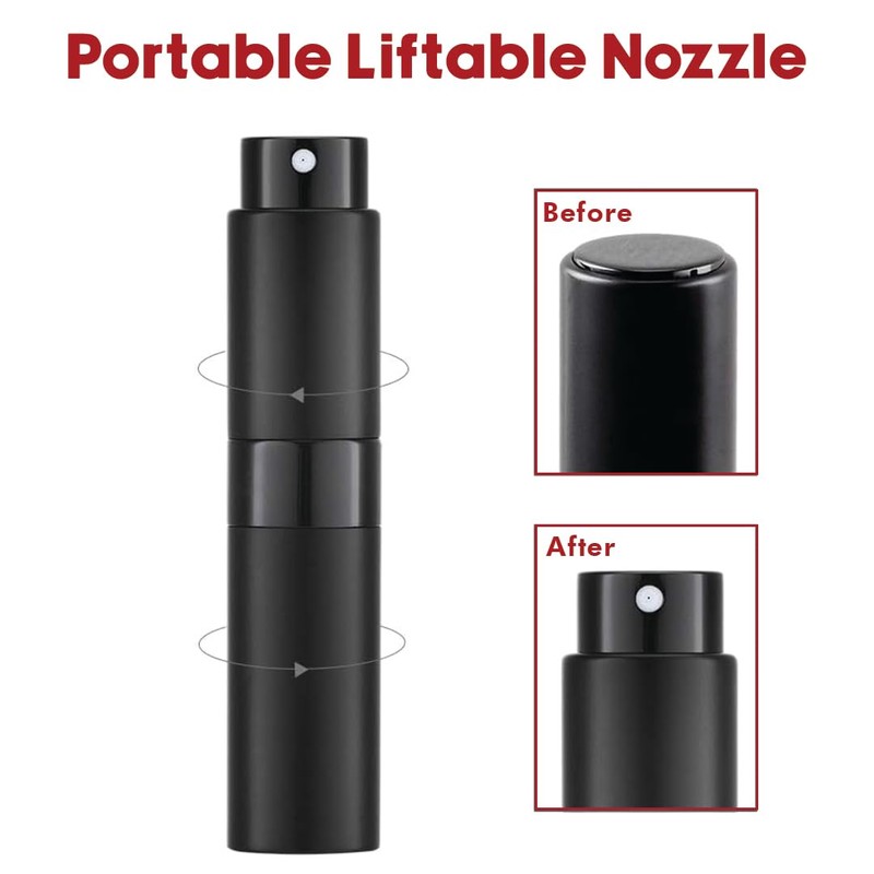 - WELL-DESIGNE: You just twist the top of mini perfume refillable bottle like a lipstick and press the top to spray the cosmetics. After using travel cologne sprayer, twisted the dispenser nozzle down for storage so that there is no cap to lose and cannot be accidentally discharged while in your purse