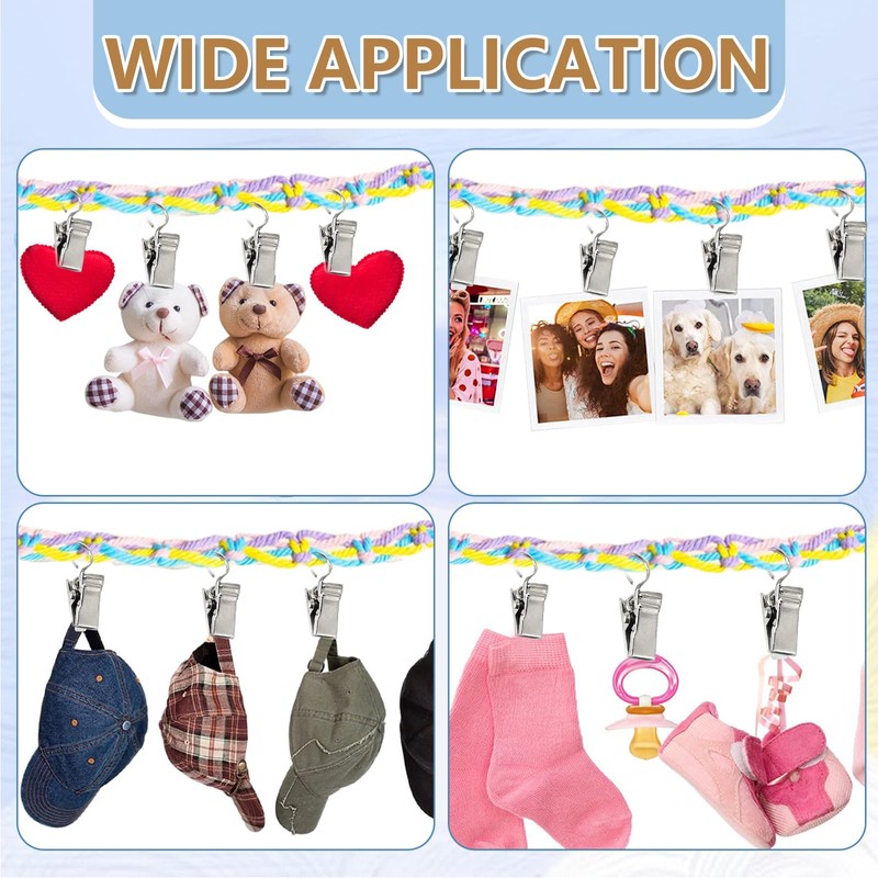 - Sturdy and Durable This stuffed animal hanging chain is made of thick cotton rope and wooden rings, which makes it more sturdy and durable. And the clips are made of stainless steel, with high load capacity and durability, so your plush doll can hang on it for a long time.