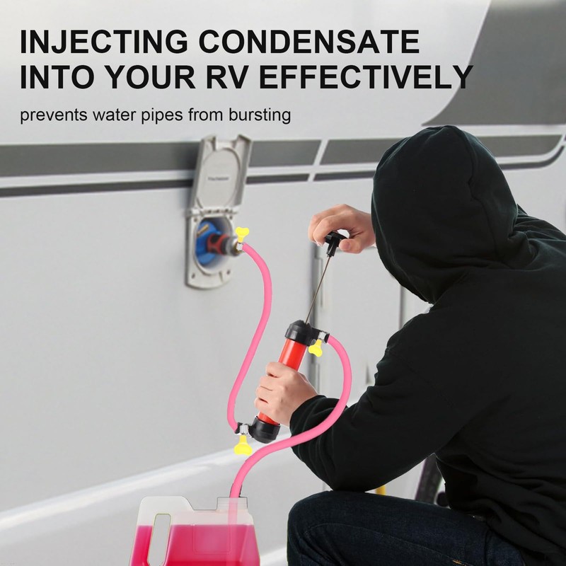 RV Antifreeze Hand Pump Kit, Multi-Use Siphon Pump Kit with 2 Connectors and 4 Clamps, RV Winterizing Kit for Gasoline, Liquid and RV Antifreeze for Winterizing