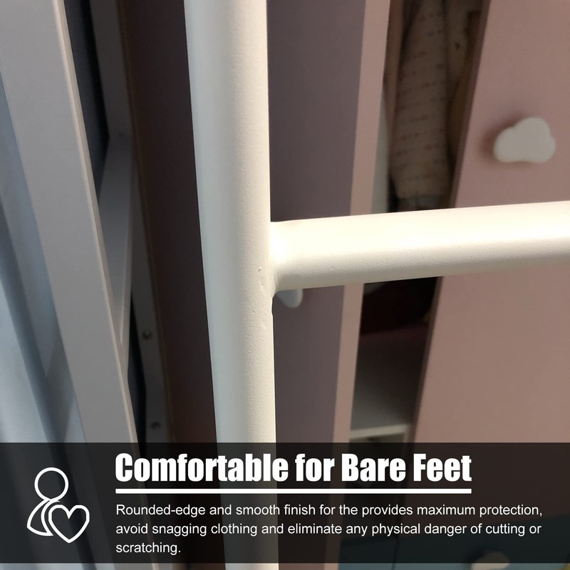 - ✅ 【 SAFETY & ADJUSTABLE 】 With 4 rubber-coated hooks to prevent scratching the bunk frame. The anti-slip foot caps at the bottom further enhances the stability of the bed. Additional mounting hook holes are reserved on the ladder, which can be fine-tuned according to the actual height of the bed.