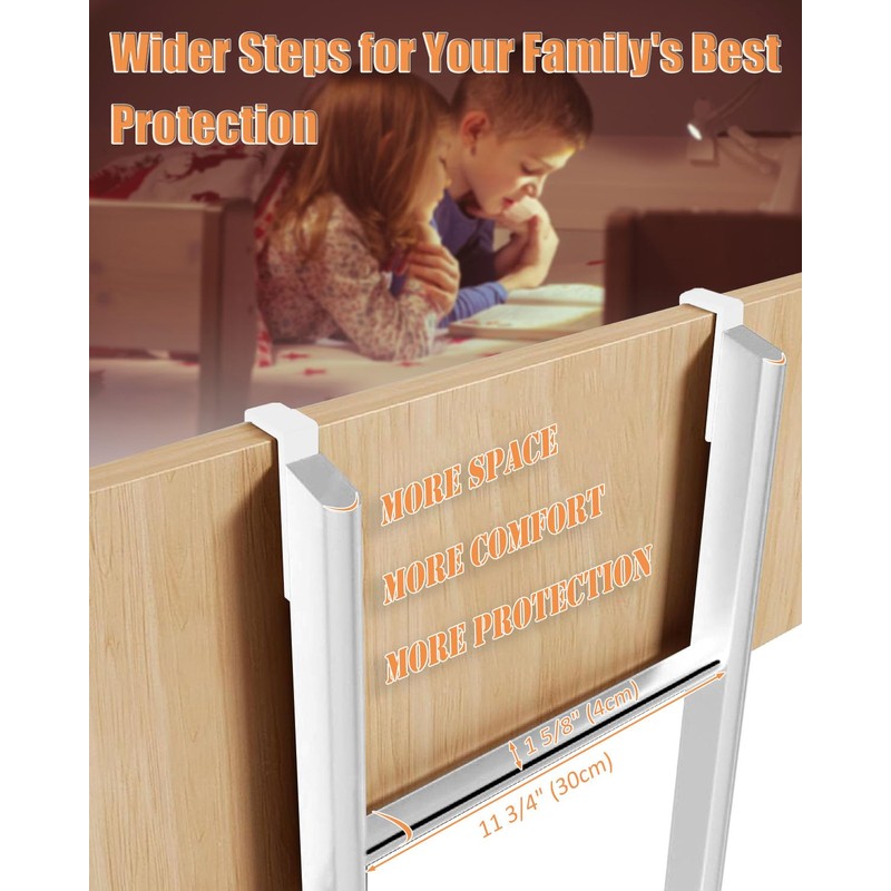 - 【 Safer Climbing Experience 】Our metal bunk bed ladder focuses on family safety. The 1 5/8" wider steps reduce the risk of missing the step and falling while climbing. The unique step incline design ensures that the steps remain level when the ladder is tilted, keeping you and your family stable during the ascent.