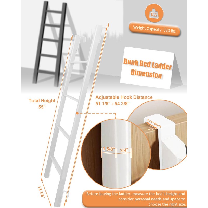 - 【 Durable & Comfortable 】Our bunk bed ladder is made from welded steel for durability, with a powder-coated finish for protection and a stylish look. The rounded-edge design ensures safety and comfort, reducing the risk of scratches or cuts. Weight Capacity: 330 lbs (150 kg).