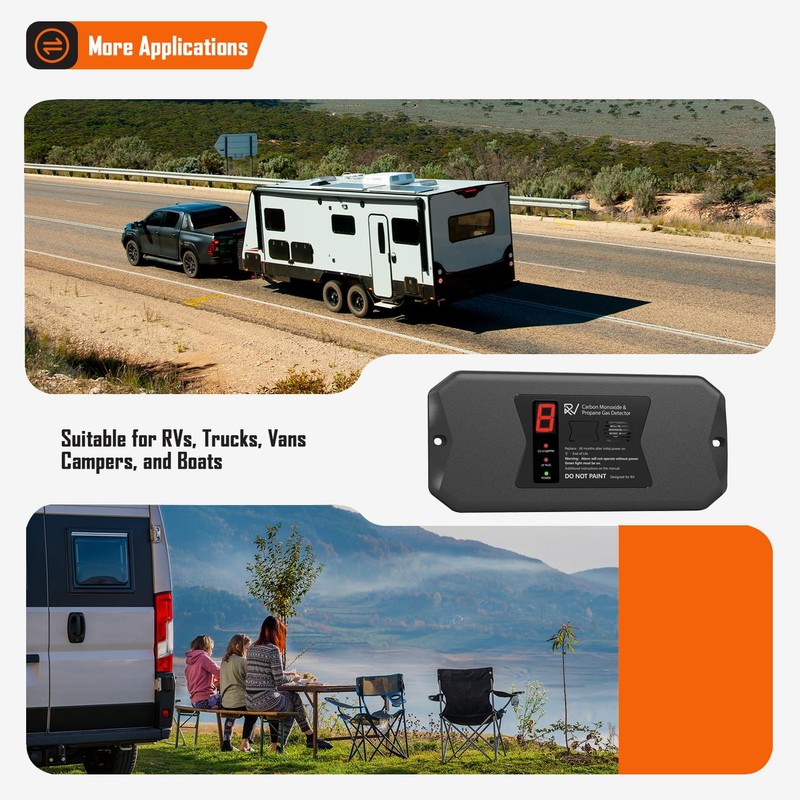 - Dual-Purpose Detector: Our RV detector monitors both carbon monoxide and propane, providing real-time safety protection during your RV trips and camping adventures. It ensures peace of mind while cooking and sleeping