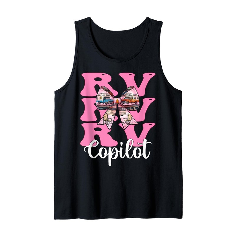 RV Copilot RV Camping Camper Motorhome Girl Mom Coquette Bow Tank Top