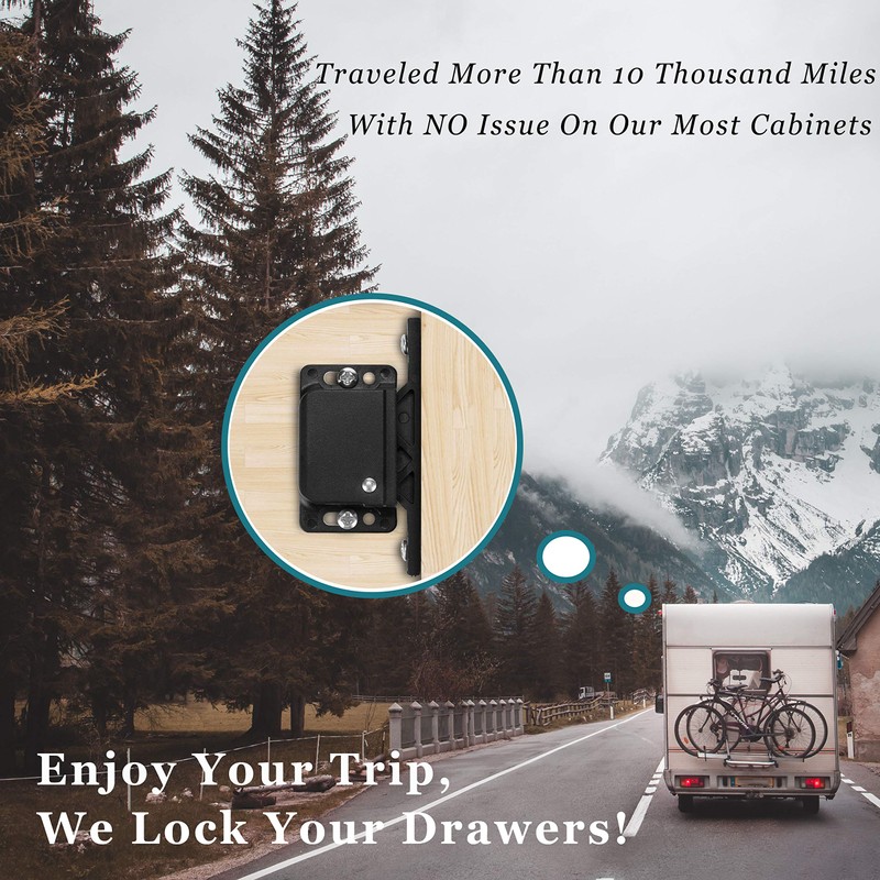 • 【Sturdy And Durable - 10 LBS Pull Force】Made of all-weather high-impact ABS material, robust and durable rv drawer latches ensures cabinites and drawers stay tightly closed with 10 lbs pull force while driving. Our latches for rv drawer and cabinet demand a stronger strength to open doors, promising durablitiy. Tested and verified uses by thoudands of customers.