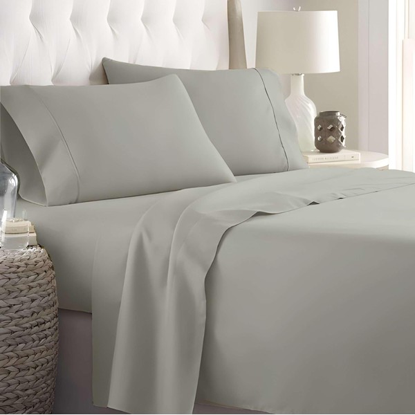 RV King Sheet Set 72x80 Cotton, 4 Piece Bed Sheets for RV King Size Mattress, Deep Pocket Sheets Fit Up to 12 Inch, Easy Fit for Camper, Motorhome, Travel Trailer, Light Grey Solid