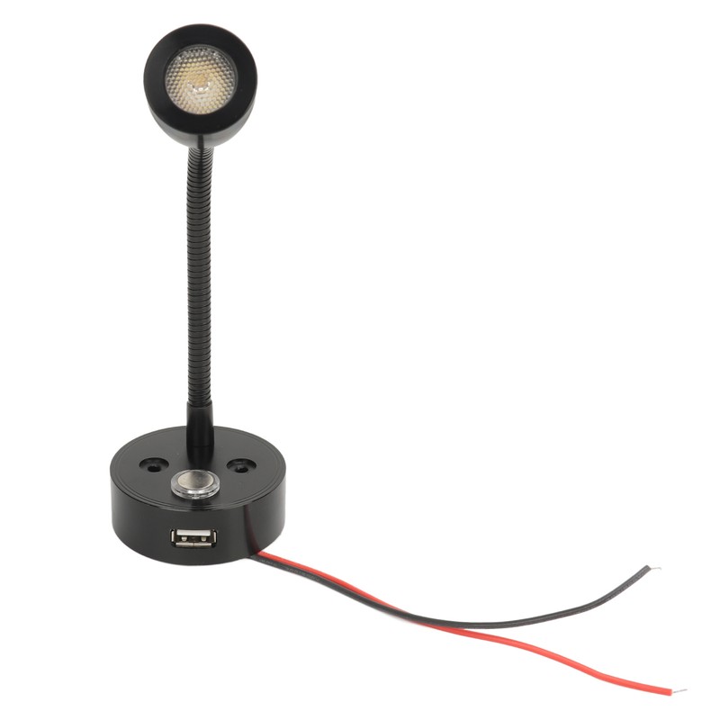 1、Premium Material: The reading light is made of sturdy aluminum alloy housing, making it low power consumption, long life, not easy to heat, safe and reliable. 2、LED Light Source: The RV bedside light has LED light source, low power loss, high stability, lower surface temperature, can ensure safer and reliable for lightening, having stable operation. 3、Portable Design: The bedside reading light has a small size, portable and compact, space saving, can be carried to anywhere in anytime, simple and convenient for use. 4、Adjustable Brightness: The boat bedside spotlight has adjustable brightness design, can be adjusted according to personal needs, to provide a suitable lighting environment. 5、USB Charging: The boat reading spotlight is equipped with USB charging interface, easy for charging, can also act as a mobile power to charge other devices.