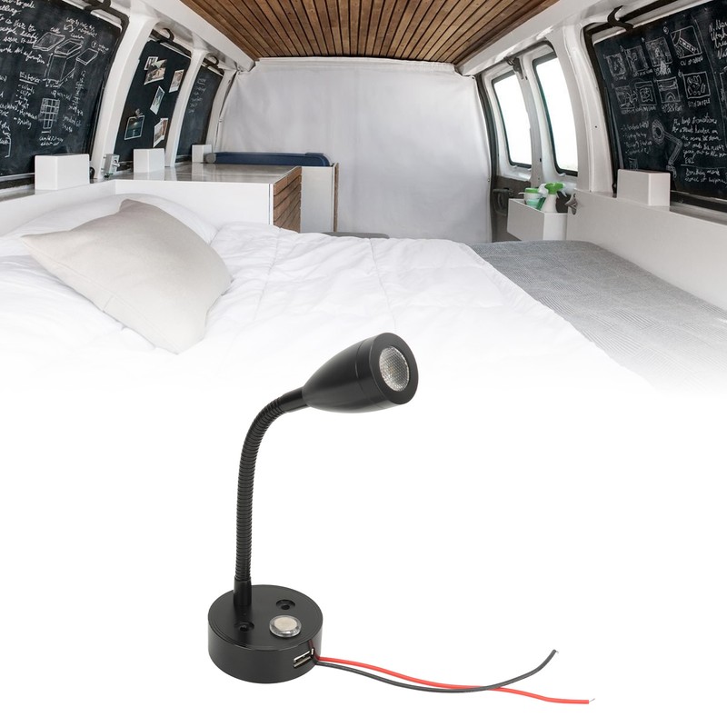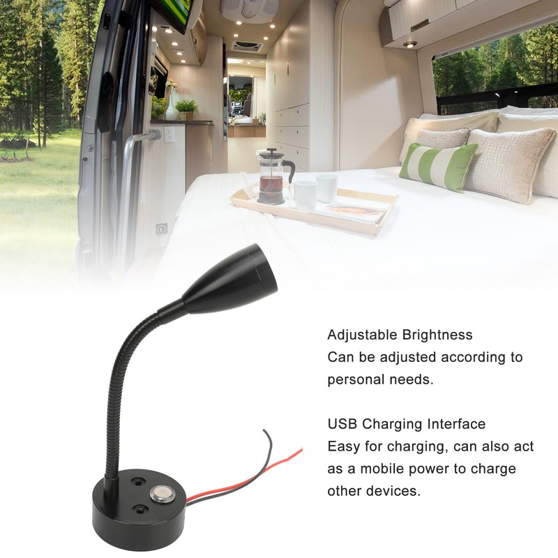 RV Reading Light LED Adjustable Brightness Touch Control Indoor Bedside Lamp for Boat Yacht DC10 to 30V Black