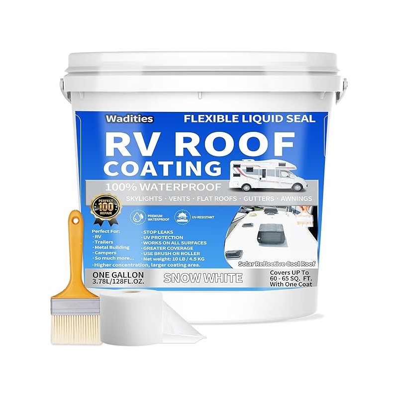 RV Roof Coating White, Wadities Waterproof Solar Reflective Sealant, Flexible RV Roof Sealant for Campers, Trailers, Motorhomes, Metal Buildings and Leak Repairs - 1 Gallon