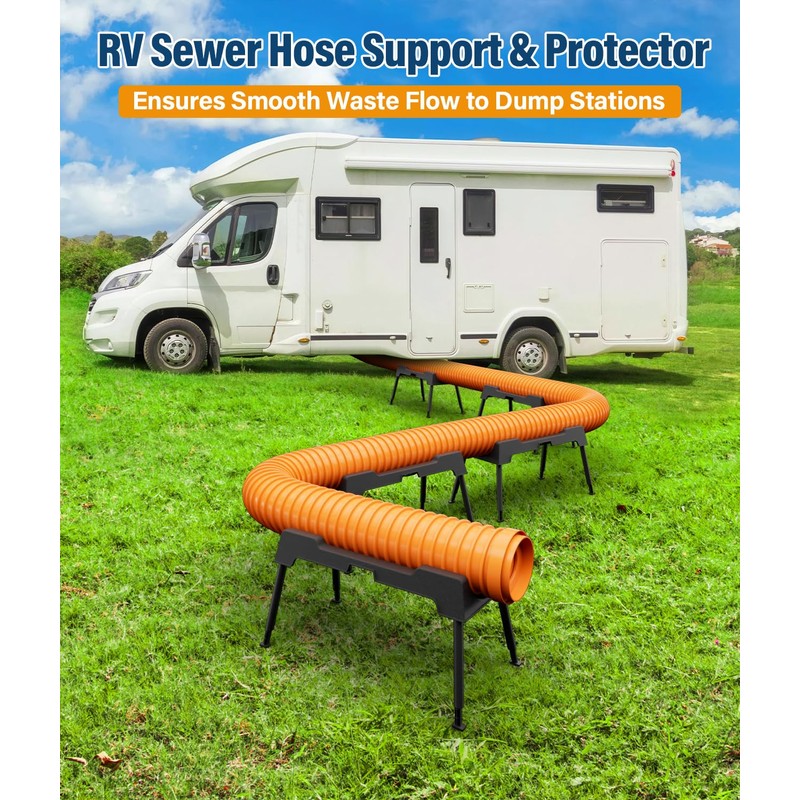 - 【5 Sections for 10FT Hose & Adjustable Height】With 5 configurable sections, the sewer hose support for RV camper fits for hoses with 10 feet length and 3 inch diameter. It is 7-level height adjustable from 5.51” to 8.05”, simply twist and lock the feet for a secure adjustment. Ensures efficient waste flow every time.