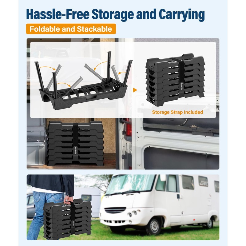 - 【Foldable & Space-Saving】Designed with four foldable legs , the RV waste hose support can be compactly stacked when not in use for hassle-free storage and transport, saving valuable space on your RV. The convenient strap coming with keeps them securely bundled for easy carrying.