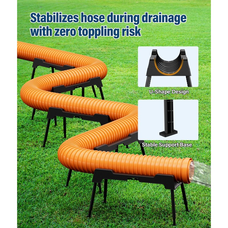 - 【Ultra-Stable Design】: Featuring a deep U-shape groove and widened support base, our RV hose support provides excellent stability and ensures zero hose toppling risk during drainage even in strong winds. Keeps your hose firmly in place on any terrain (grass, gravel, cement, etc).