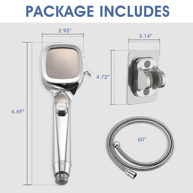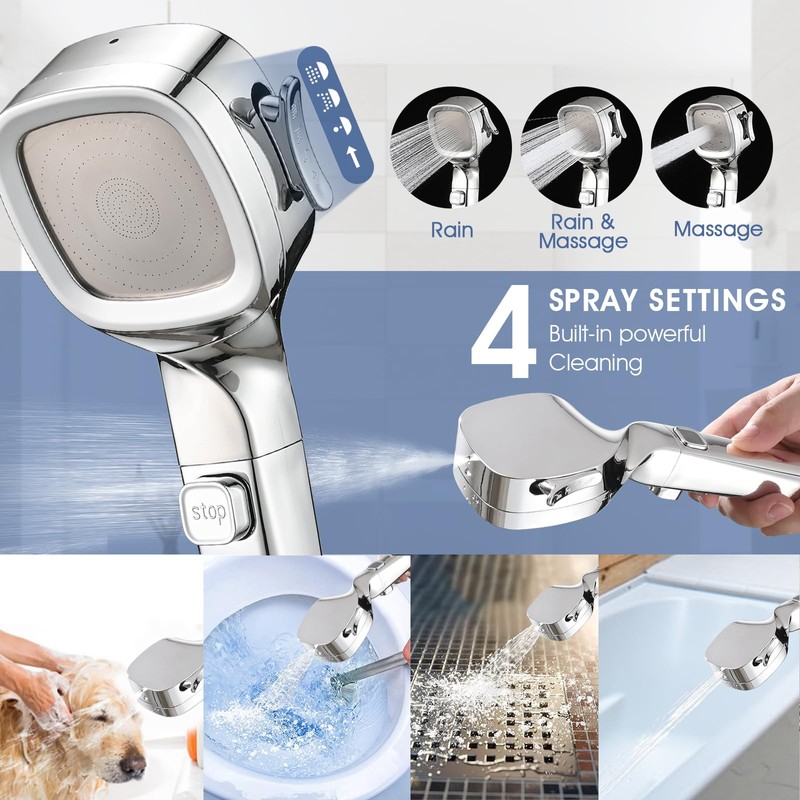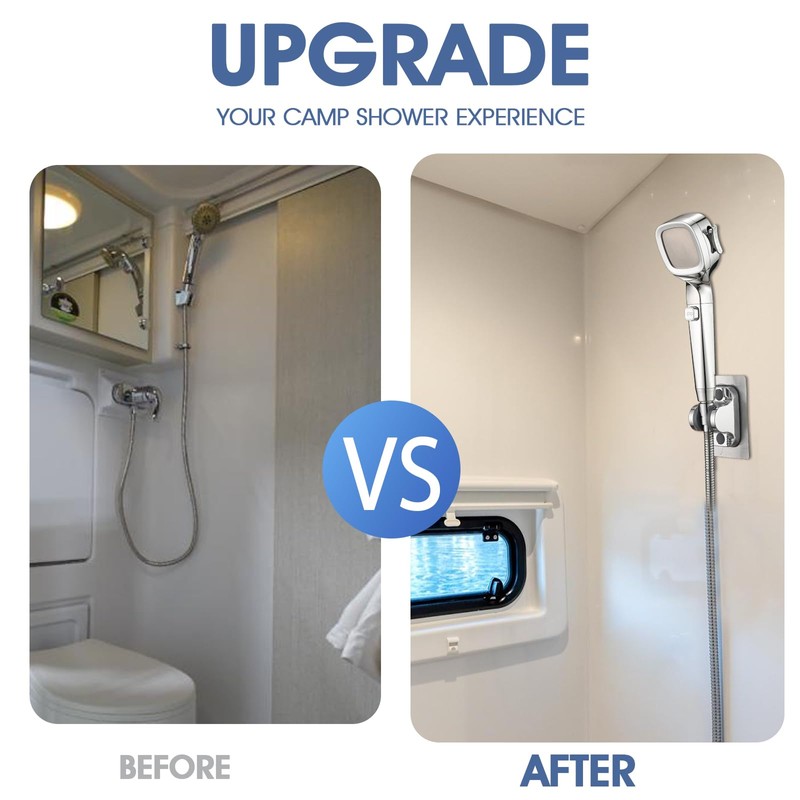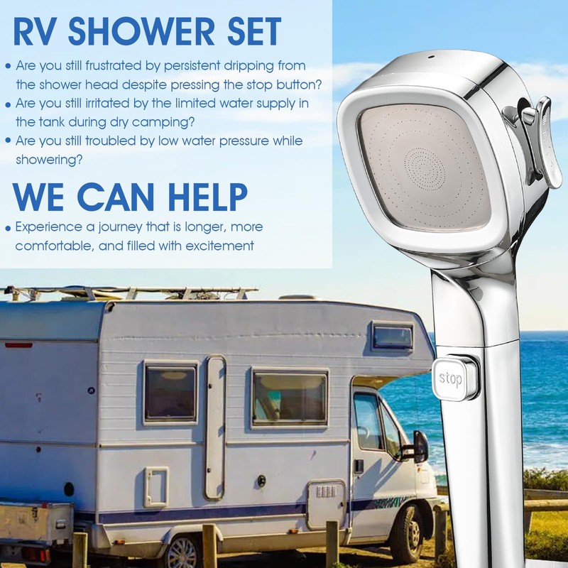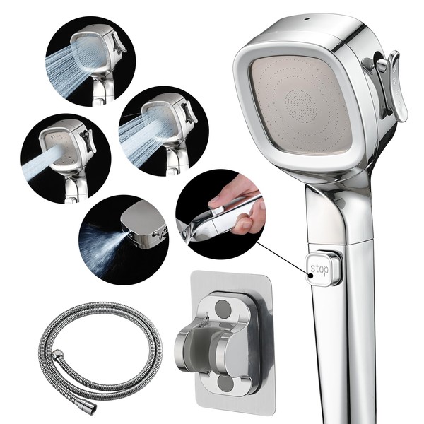 YASINU RV Shower Head with Hose and On Off Switch, High Pressure Camper/RV Shower Head Replacement, 4 Setting, 60 inch Hose, Water-Saving, Chrome