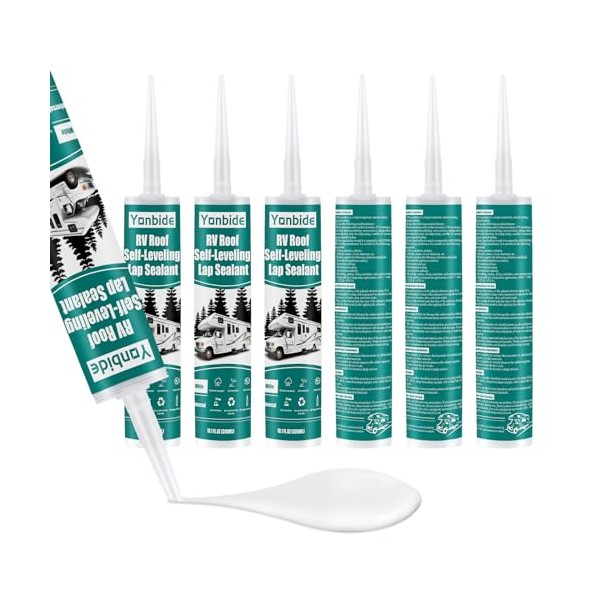 RV Silicone Sealant - RV Roof & Caulking White, Self-Leveling Lap Sealant (6 Pack) - Waterproof Sealing for Trailers, Motorhomes, Campers