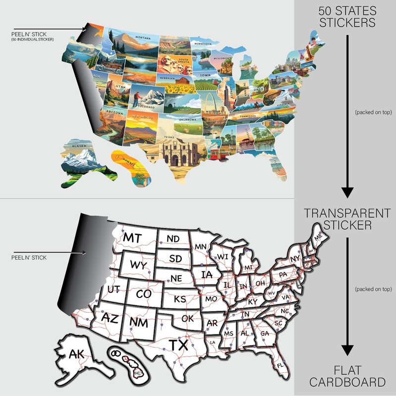 - VIBRANT AND EDUCATIONAL US MAP: This US map showcases the unique landscapes of each state with vibrant colors. It's perfect for scrapbooking, classrooms, homeschools, and as a fun activity for children, friends, and families. These non-magnetic decals adhere well to walls, doors, and windows.