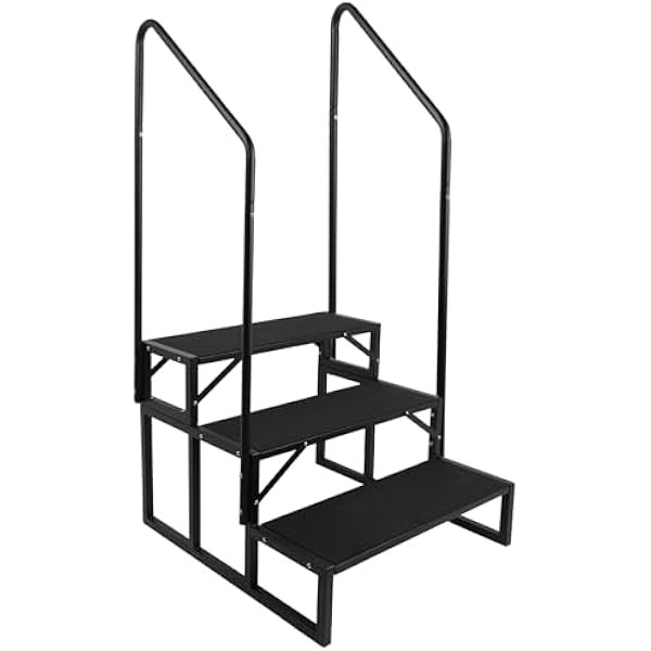 RV Steps w/Dual Handrails, 3-Step Spa Hot Tub Steps with Anti-Slip Pedals, 660lbs Load Capacity, Universal Portable Mobile Home Stairs Steps for 5th Wheel RV, Spa, Porch, Pool, Travel Trailers