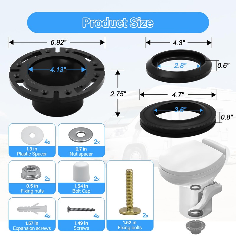 - Excellent Customer Service: This RV Toilet Seal Replacement Kit is ideal choose to fix your RV toilet sealing problem. If the product has any problem, please contact us feel free, we can provide you with a satisfactory solution within 24 hours.
