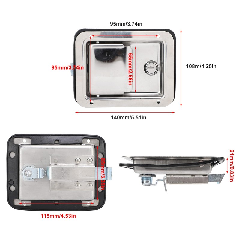 - Versatile Installation: With an external dimension of 140x108 mm and a recessed opening size of 115x85 mm, this latch is suitable for installation on door panels with a thickness of less than 21 mm.