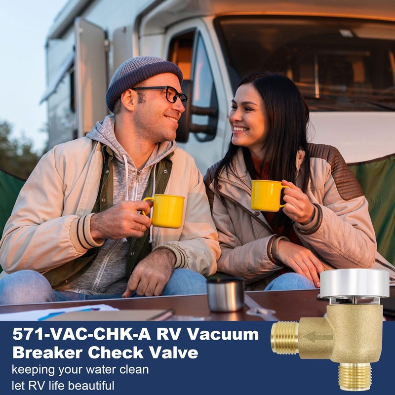 Yunziling RV Vacuum Breaker Check Valve, Replace Leaking Vacuum Breaker on Black Tank Check Valve for RV Camper Trailer Flusher, 571-VAC-CHK-A Brass Breaker to Improve Freshwater