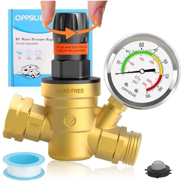 RV Water Pressure Regulator, Handle Adjustable Knob No Tool Required Pressure Regulator,Brass Lead-Free Water Pressure Reducer with Gauge for RV Camper Travel Trailer,RV Parts