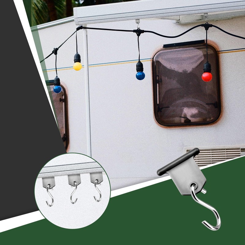 RVGUARD RV Awning Light Holder, 20 Pack, Clips Easily Slide into RV Awning Roller Bar Channel, Each Hook Can Support 15 lbs