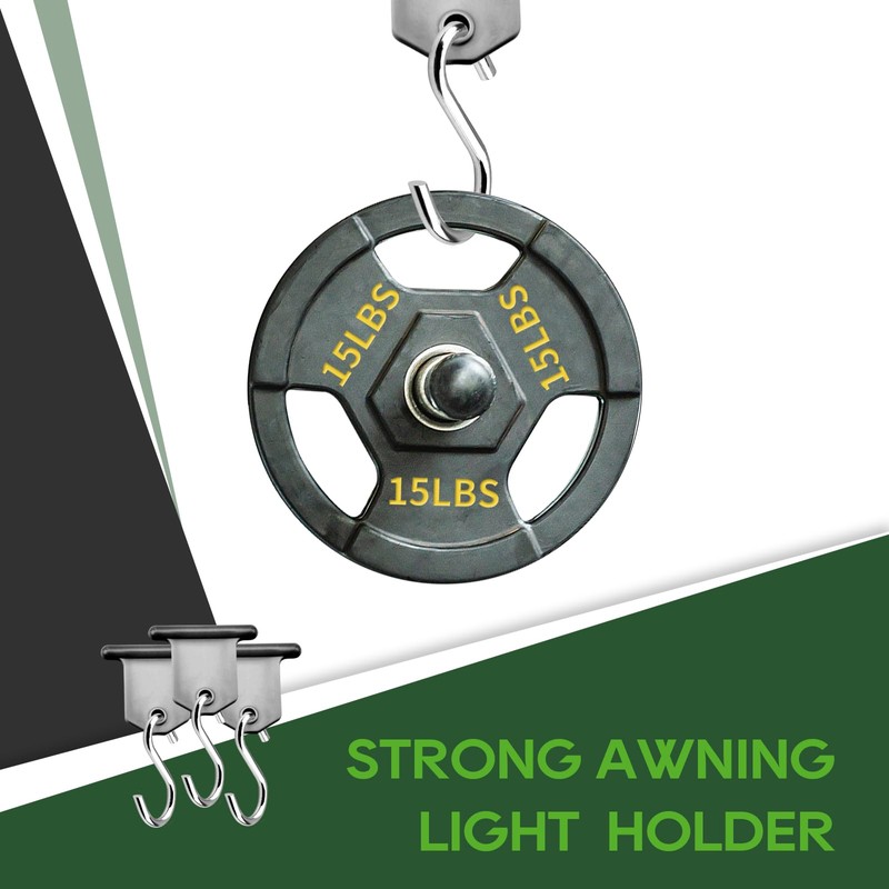 - Used to hang party lights and more from the RV awning roller bar.
