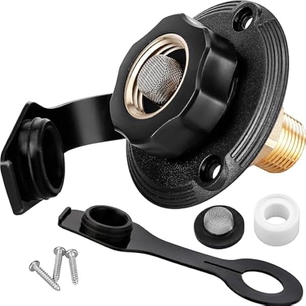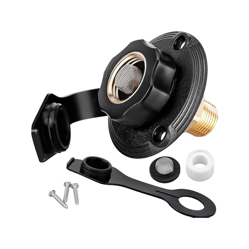 RVGUARD RV City Water Inlet, 3/4" NH Female to 1/2" NPT Male City Water Fill Inlet Flange Brass with Check Valve for RV, Camper, Trailer, Marine (Black S)