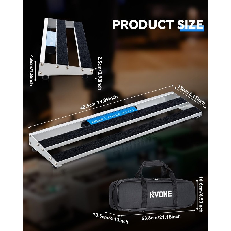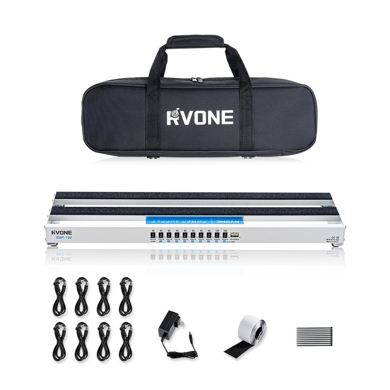 RVONE Guitar Pedal Board with Built-in Power Supply, Aluminum Alloy Portable Pedalboard with Bag, Pedal Cables, Hook&Loop (RPB-150)