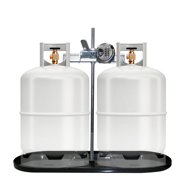 • 🚩【FUNCTION】: Our Dual Propane Tank Rack Device has Mounting Rack and Passwork Lock, can hold up two 30 pound tanks securely.