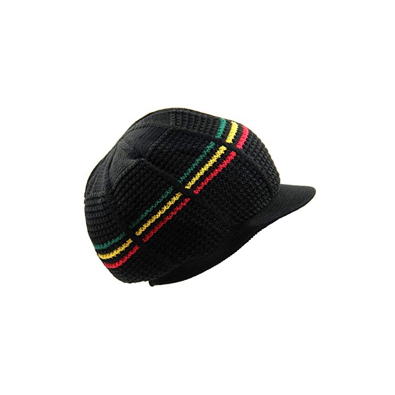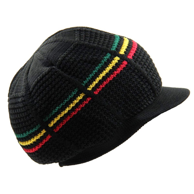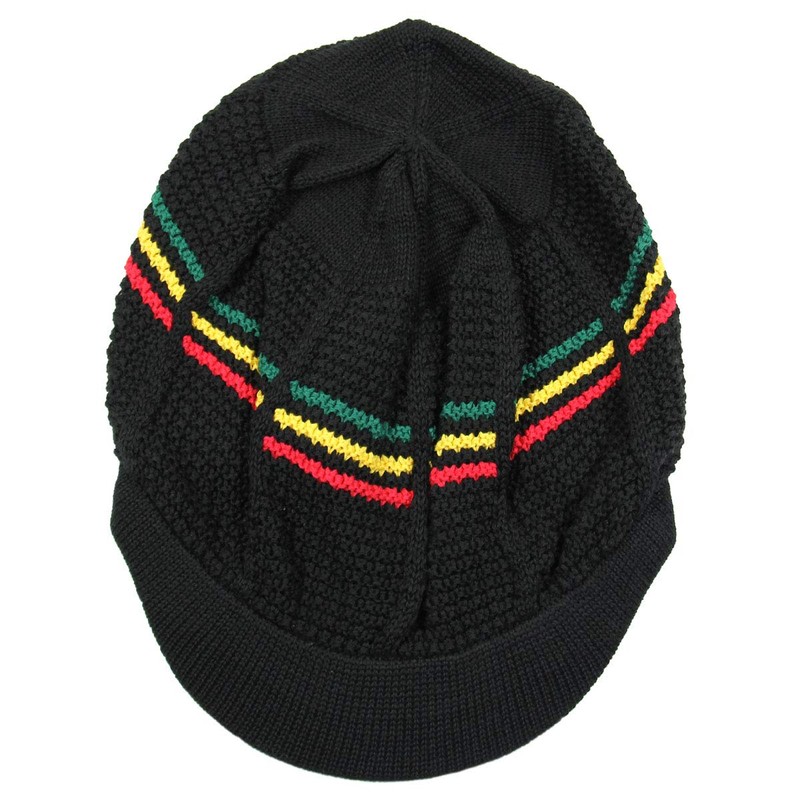RW 100% Cotton Slouchy Beanie Visor (Black/Rasta)