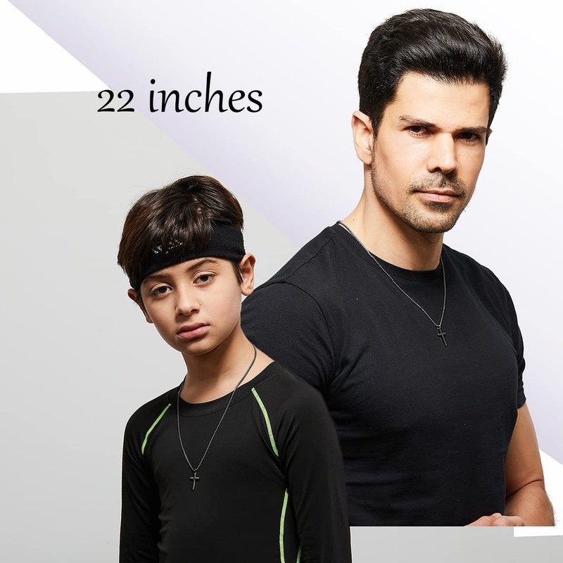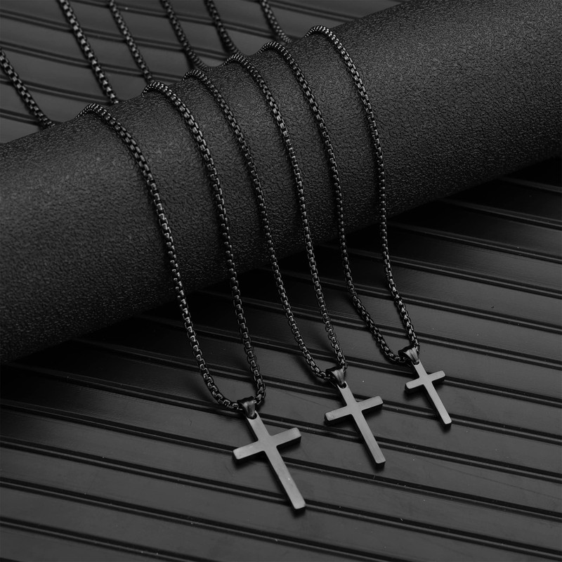 RWQIAN Stainless Steel Cross Necklace for Men Black 55cm Cross Pendant Necklace Simple Jewelry Christian cross Chain for Mens