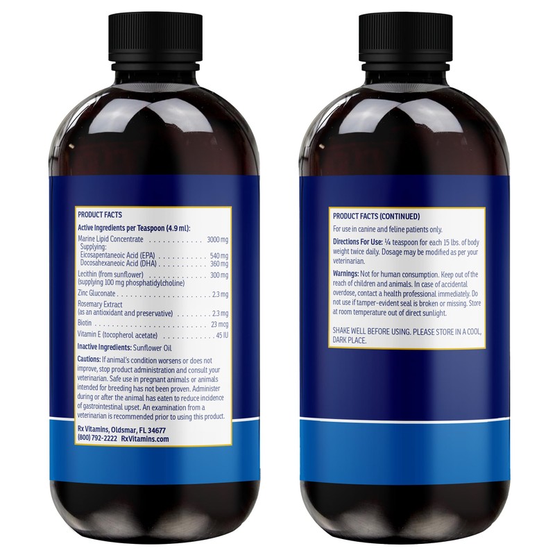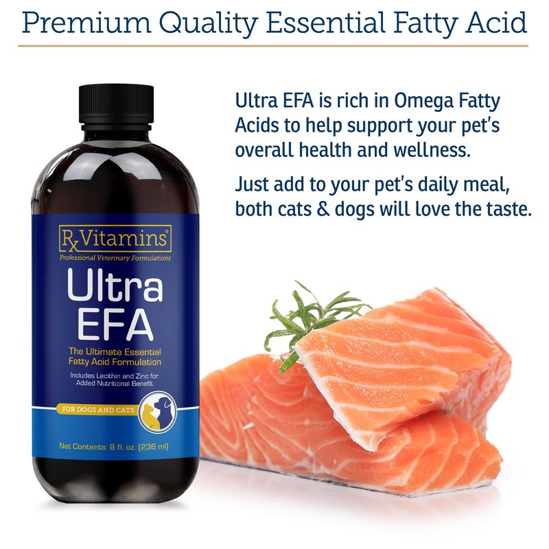 Rx Vitamins Ultra EFA Omega 3 Fish Oil for Dogs & Cats - Promotes Heart, Brain, and Joint Health with Vitamin E, Biotin, and Zinc - Liquid Fish Oil for Itch Relief, Dog Shedding, Coat Health - 8 oz
