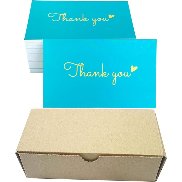 RXBC2011 500 Little Thank You Cards Gold Heart Design Bulk Thank you Notes for All Occasions 3.5 x 2 Inch AQUA color