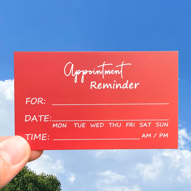 - Great value: Pack of 100 cards. 3.5” x 2” Inches, (Standard Business Card Size). Appointment detail information at the front side. Blank on the back side for any notes you want.