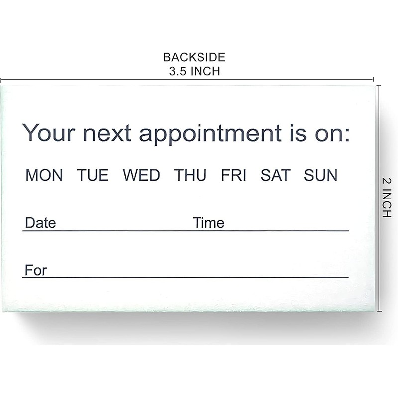 - GREAT VALUE: Pack of 500 cards. 3.5” x 2” Inches, (Standard Business Card Size). Appointment detail information at front side. Blank on the back side for any notes you want.