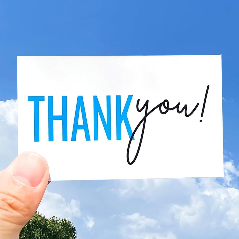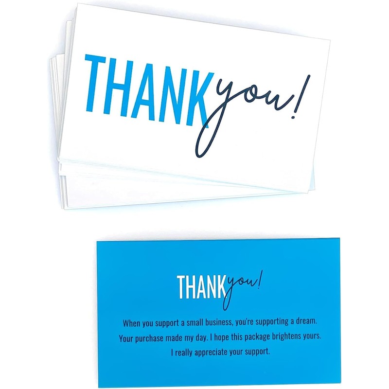 • Crisp Blue Design: These thank-you notes feature a sky blue backdrop that invokes a sense of calm and sincerity, perfect for expressing genuine appreciation to your clientele.