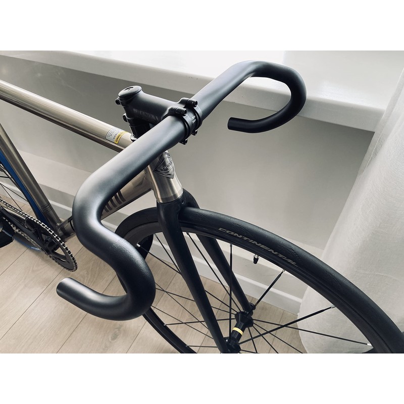 - 3.This style is one of the standard mold of modern road racing bike, its tortuosity is especially made to fits the brake system, and in the position of the brake system, we prayed it with a layer of granule paint to increase the friction between the brake handle and the handlebar, providing you a safer and comfortable riding.
