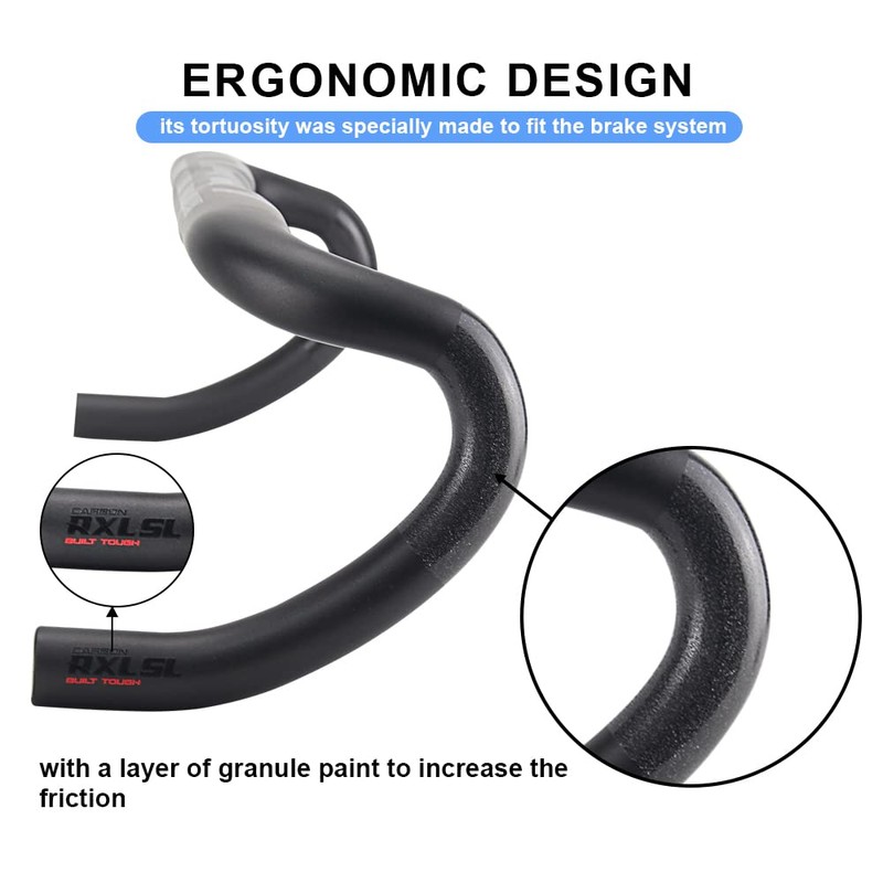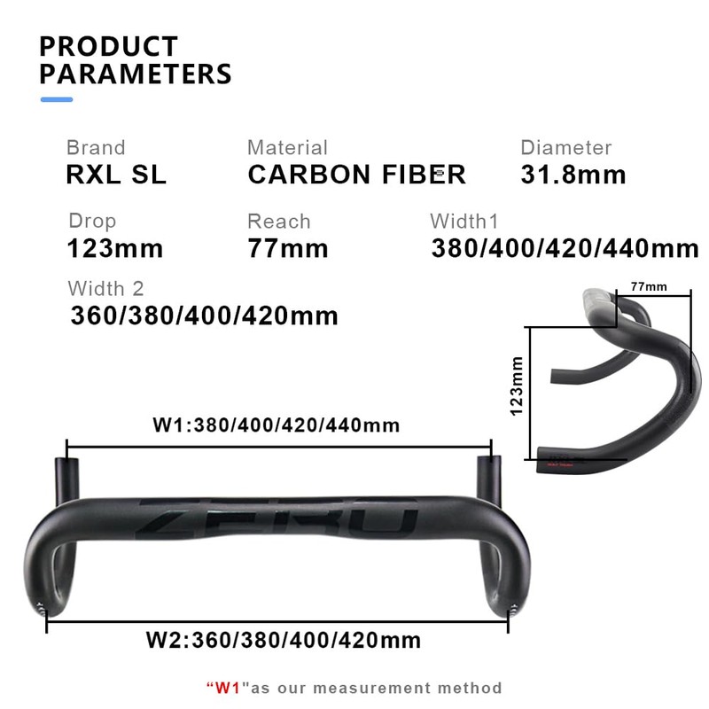 - 1.Carbon handlebars road bike brand: RXL SL; Weight:Approx 180g (420mm); Color: Black; Finish: UD Matte; drop bars handlebars diameter:31.8mm; Carbon handlebar width: 400/420/440mm; Drop:123mm; Reach:77mm; Torque:4Nm
