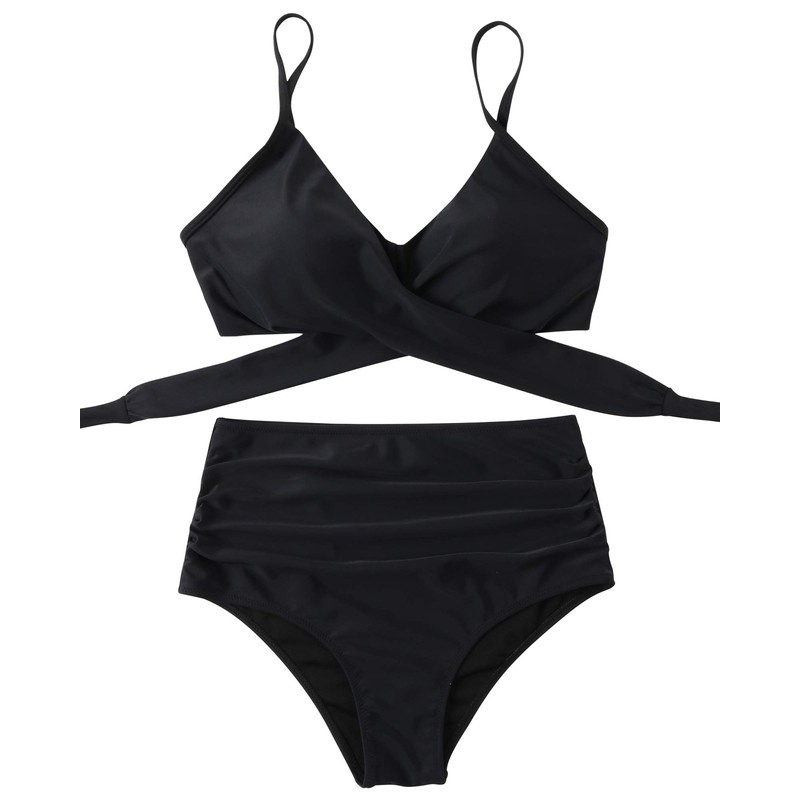 RXRXCOCO Women Wrap Bikini Set Push Up High Waisted 2 Piece Swimsuits Plus Size Swimwear Black