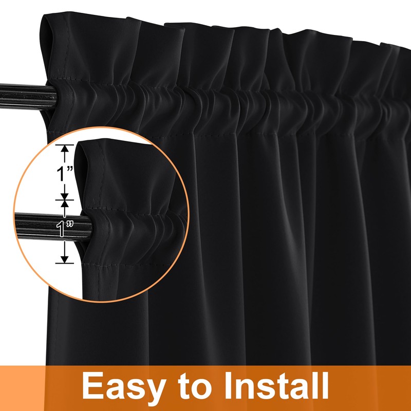 Classic rod pocket design fits most standard curtain rods. Blocks 100% light and UV rays – perfect for French doors, bedrooms, and sidelight windows.